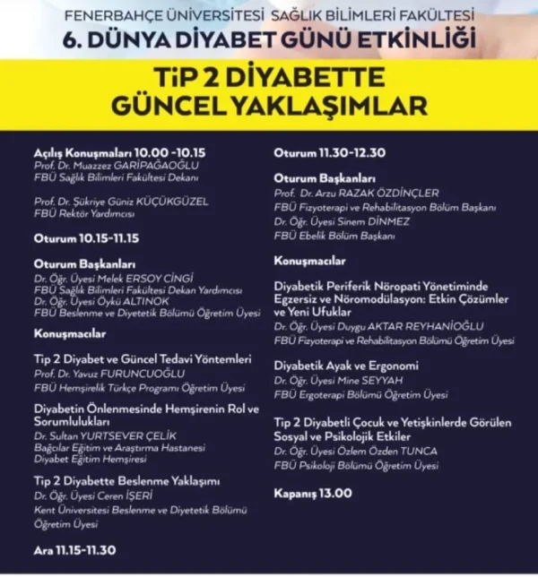 Fenerbahçe Üniversitesi 6. Dünya Diyabet Günü Etkinliği kapsamında “Tip 2 Diyabetli Çocuk ve Yetişkinlerde Görülen Sosyal ve Psikolojik Etkiler” konusunda bir seminer verdim.